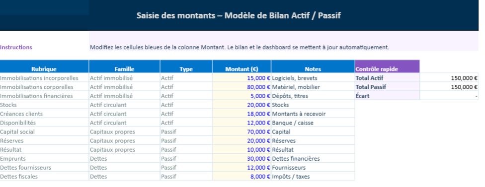 Modèle de Bilan Actif Passif sur Excel automatisé à Télécharger