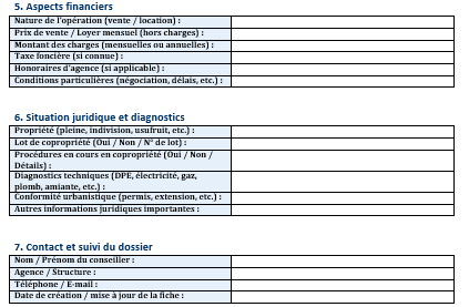 Modèle de fiche descriptive de bien immobilier vierge (format Word)