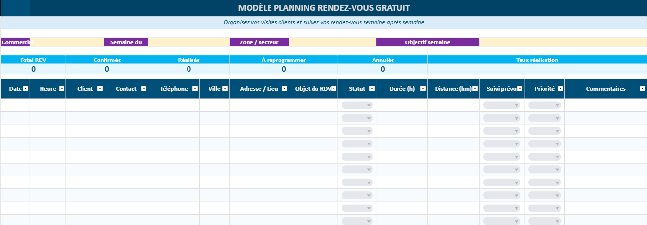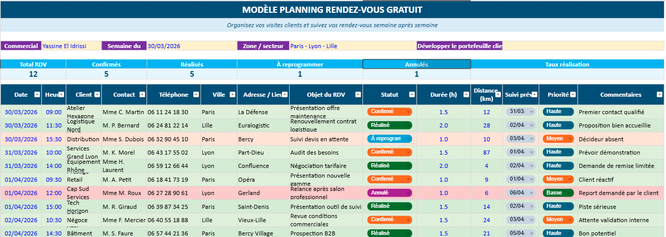Modèle planning rendez-vous gratuit ( Excel) : organisez vos visites clients avec méthode et précision