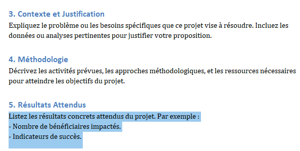 - Évaluation Simplifiée : Les bailleurs de fonds et les comités d’évaluation peuvent facilement analyser la viabilité du projet.