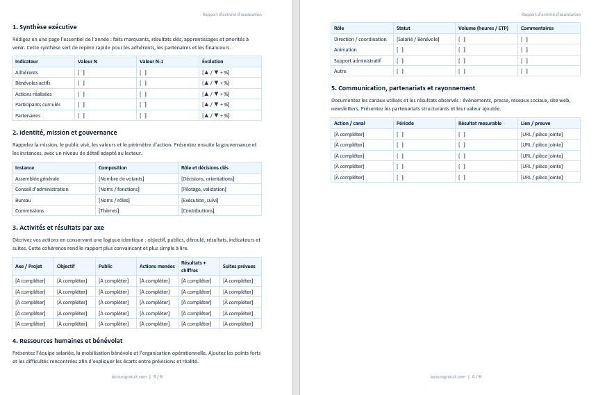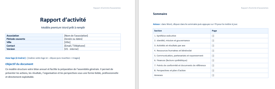 Rapport d’activité association Word à remplir + modèle prêt à imprimer