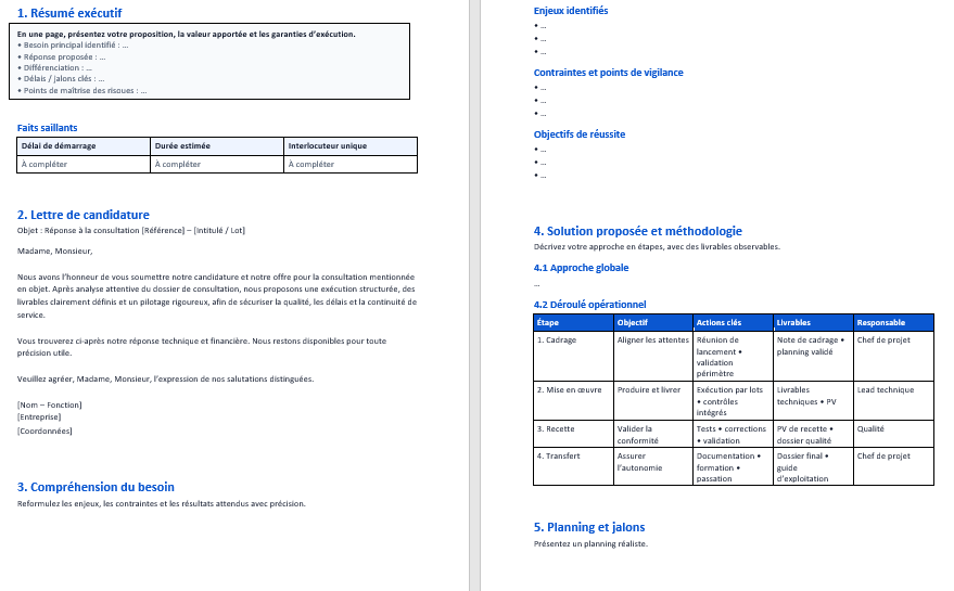Modèle de réponse à un appel d’offre prêt à utiliser (structure complète)