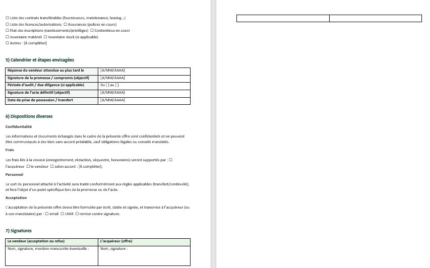 Pourquoi une offre d’achat de fonds de commerce mérite un modèle dédié
