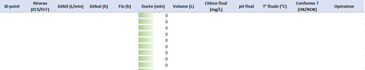 Télécharger un Modèle Excel automatisé — Désinfection & rinçage des réseaux sanitaires (CT, dosage, rinçage, neutralisation ) Exploitable