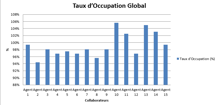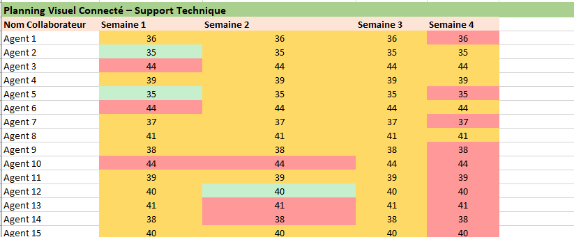 - Des alertes visuelles (cellules rouges) si un agent dépasse les 100 % de charge