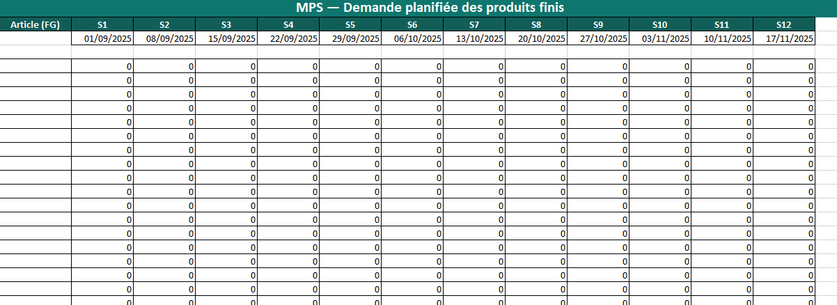 Modèle Excel vierge – MPS/MRP
