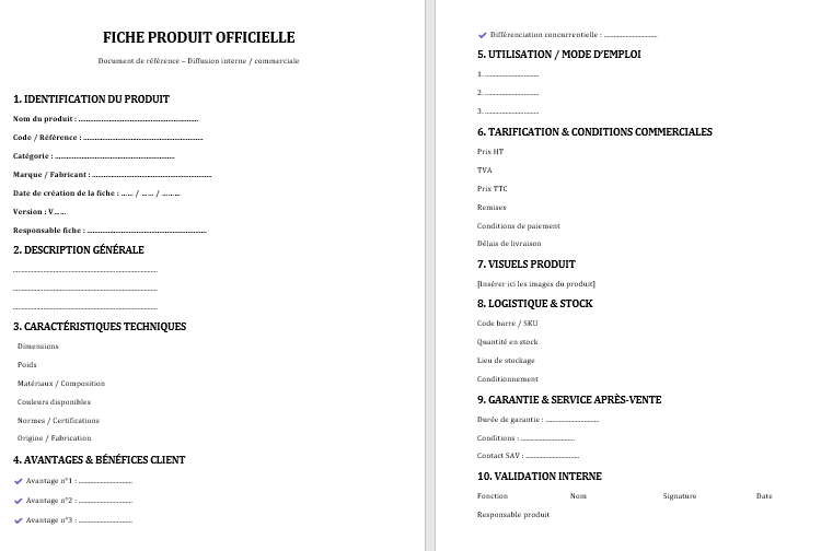 Modèle Word de fiche produit + guide pour optimiser toutes les informations essentielles