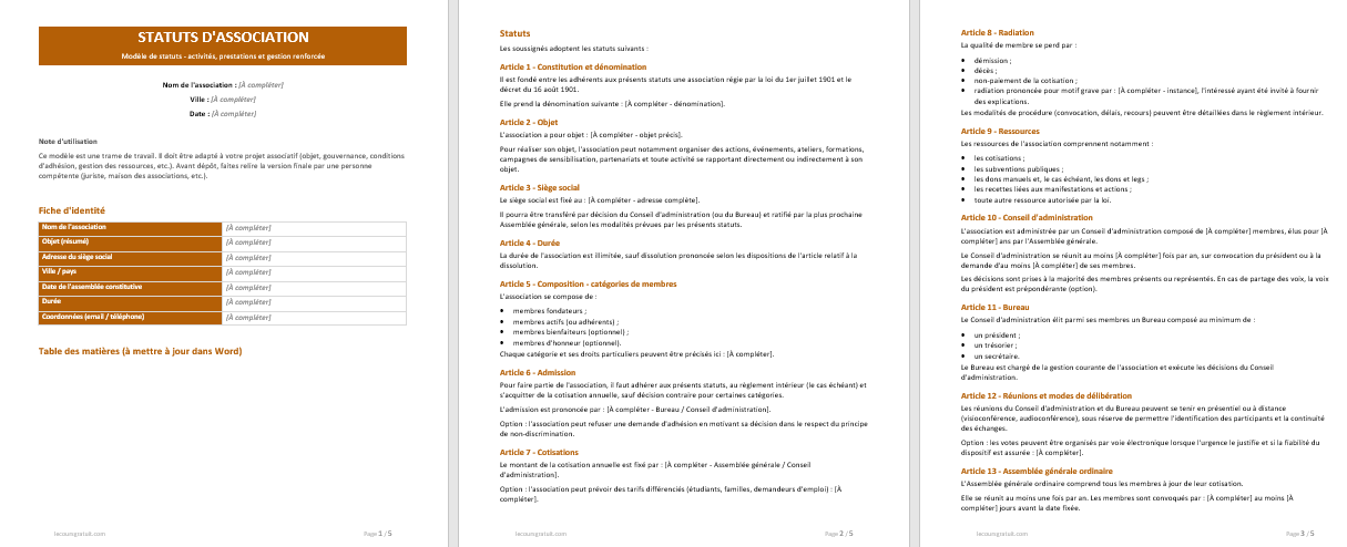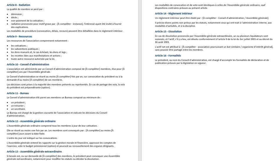 Modèle Statuts d’association Loi 1901: Exemples Word éditables