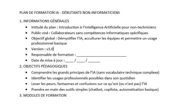 🧩 Décomposition complète d’un Plan de Formation IA pour non-informaticiens
