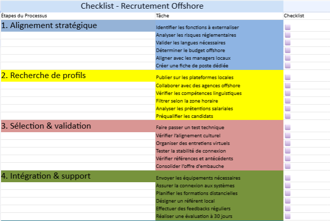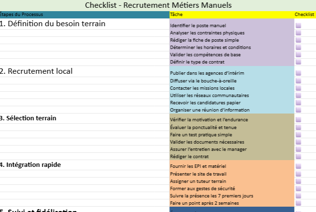Modèles de Checklists de Processus de Recrutement : Sourçage, Pré intégration, Formation et Vision Long Terme