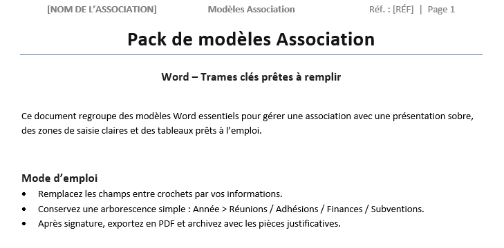 Une association se développe mieux quand ses fondations sont nettes. Ce pack vous donne une structure immédiatement opérationnelle : Word pour sécuriser, Excel pour piloter.