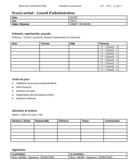 - Archivez chaque pièce (PV signés, émargements, justificatifs) dans un dossier annuel.