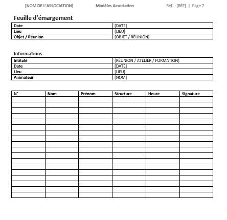 - Feuille d’émargement (réunion, atelier, formation)