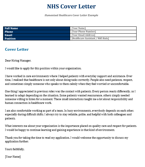 The strongest NHS cover letters usually feel more grounded. They sound like they were written by someone who understands healthcare environments from real experience rather than from a template copied online.