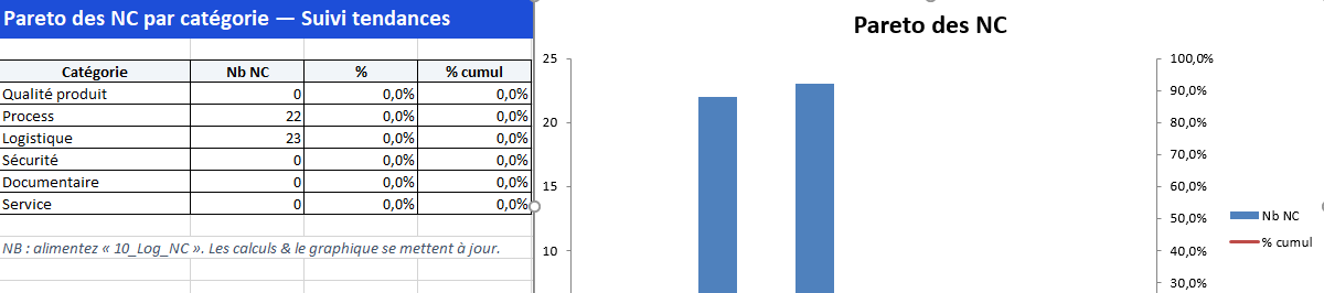 - Pareto & KPI → choisir 3 NC prioritaires.