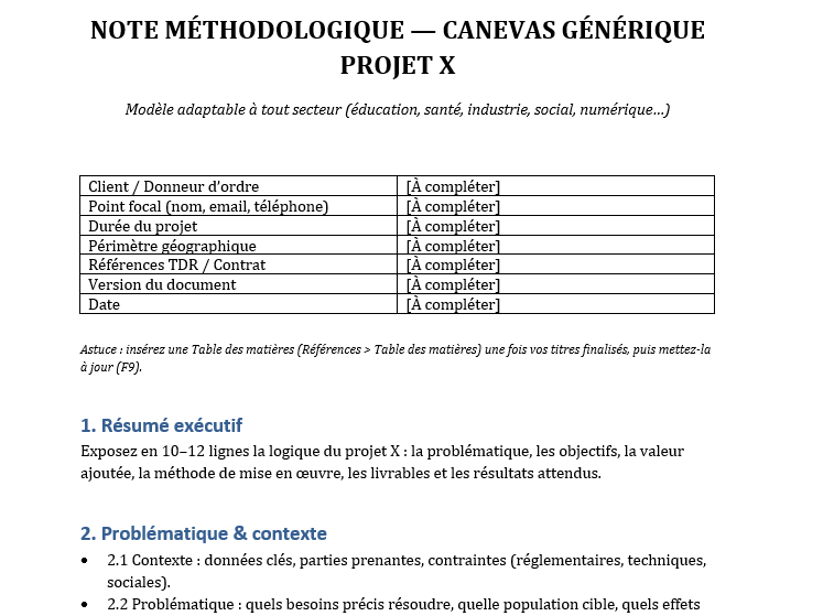 NOTE MÉTHODOLOGIQUE — CANEVAS GÉNÉRIQUE – PROJET X