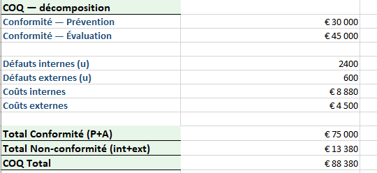 Coût_externes (€) = Défauts_externes × Coût_garantie_par_unité