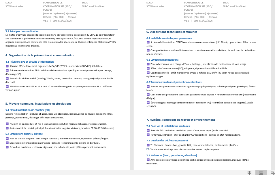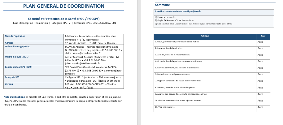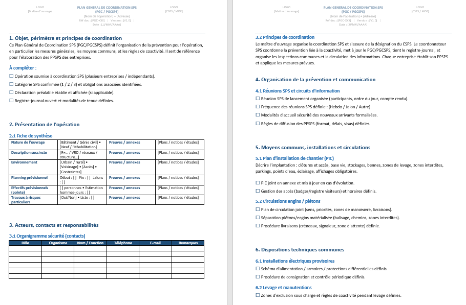 Le PGC s’écrit dans une logique de coordination SPS : il rassemble et harmonise les mesures prévues par les différents intervenants, notamment en intégrant les PPSPS au fur et à mesure de leur élaboration.