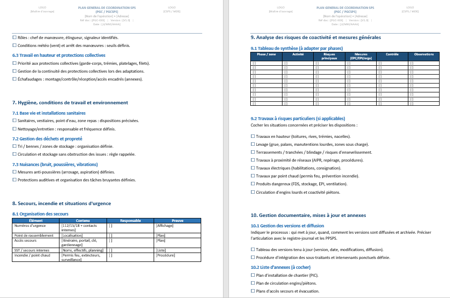 Le PGC en matière de sécurité et de protection de la santé est un document écrit qui définit l’ensemble des mesures destinées à prévenir les risques liés à la coactivité et à l’organisation de l’opération.