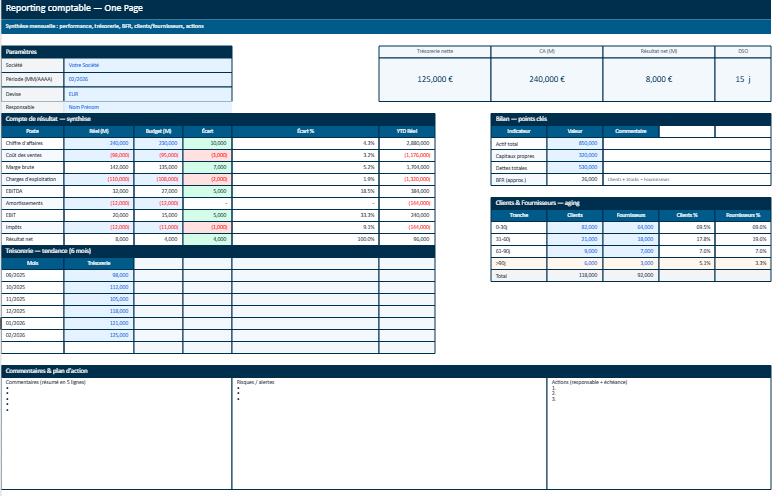 - Graphiques (Optionnels) : Utilisez les graphiques et graphiques optionnels pour visualiser les données importantes de manière claire et concise.