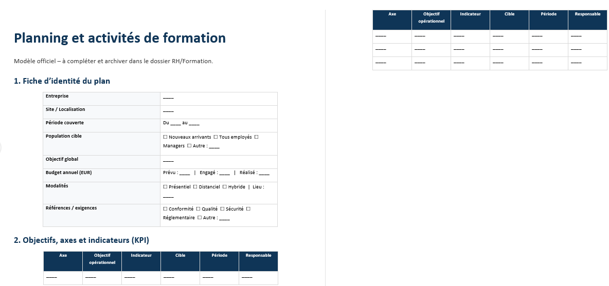 Plan de formation des employés : modèle Word