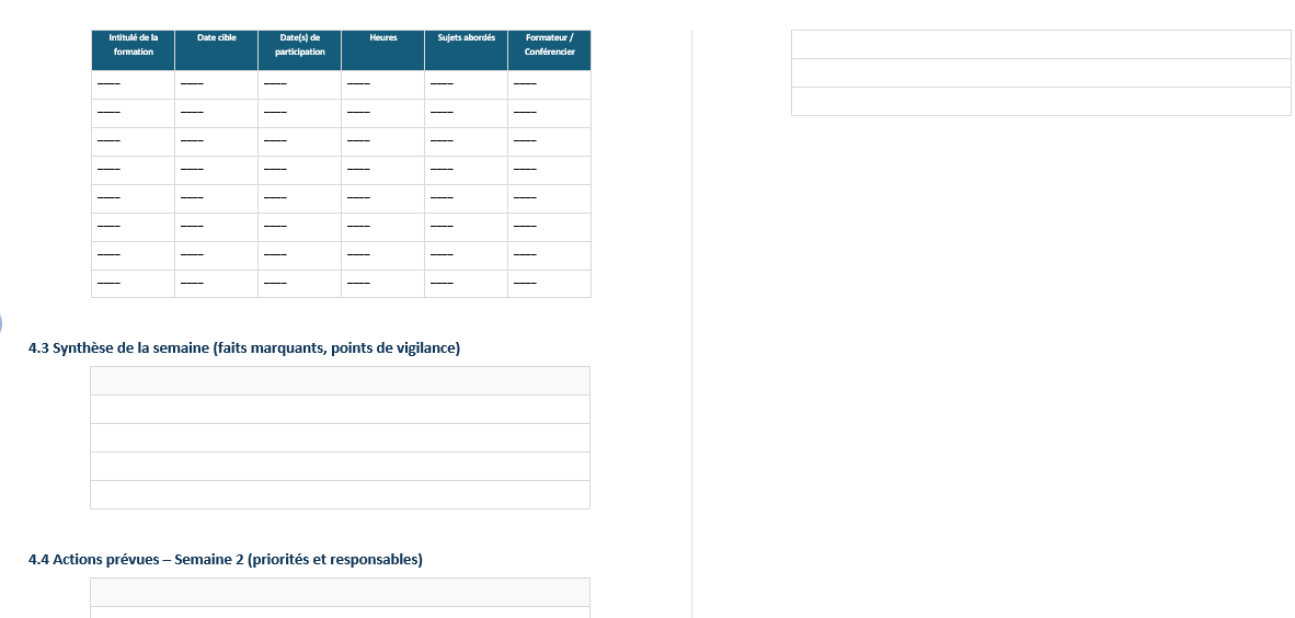 Ce bloc devient précieux quand il faut produire un bilan, répondre à une demande interne, ou préparer une revue RH.