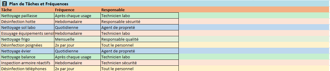🟩 Feuille unique nommée : Plan Nettoyage Labo