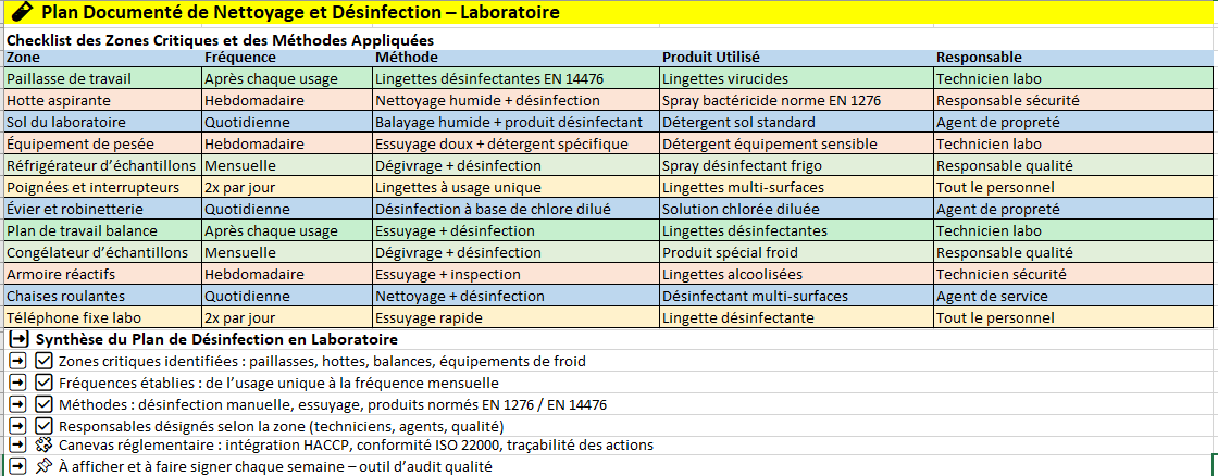🧪 Plan de Nettoyage-Désinfection en Laboratoire PDF et Excel : Une Obligation Règlementaire et Qualité