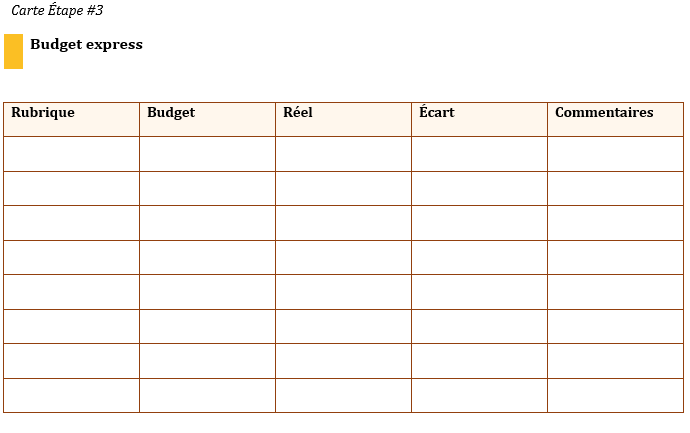 Suivez Prévu vs Réel vs Écart dans la table “Budget & coûts”. Décidez en amont l’unité d’œuvre (€/km, €/date).