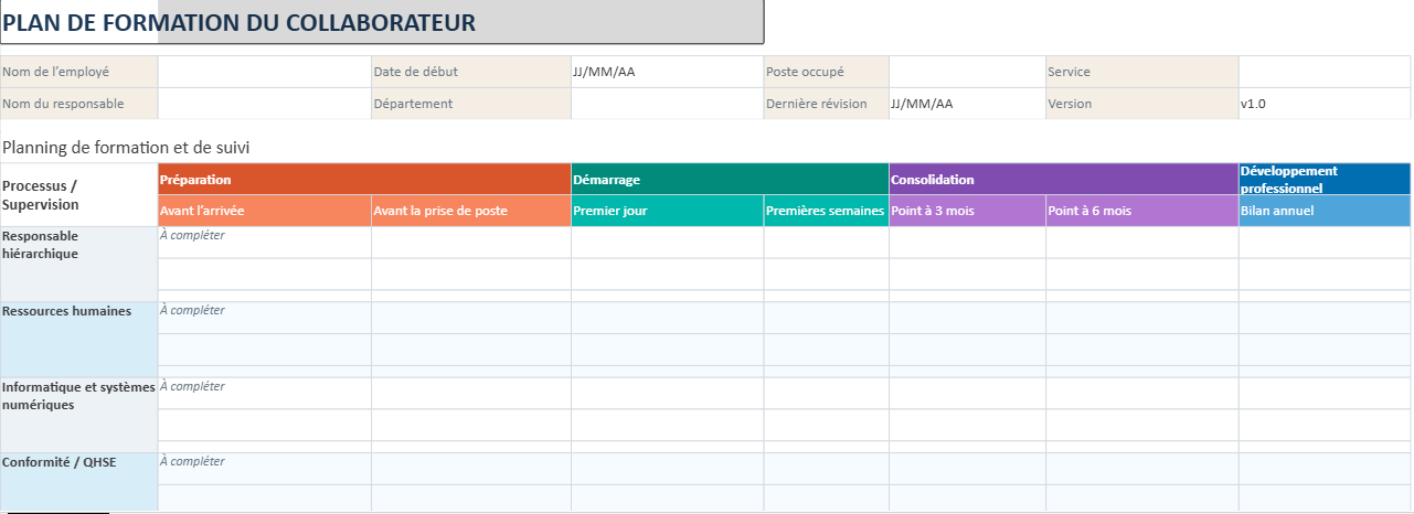 Autrement dit, ce tableau accompagne toutes les périodes où un collaborateur doit apprendre, consolider ses repères et progresser de façon structurée.