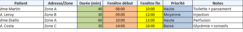 - SSIAD/HAD : l’intervenant Zone A dépasse 7 h/jour → déplacer une perf vers Zone C si distances comparables.