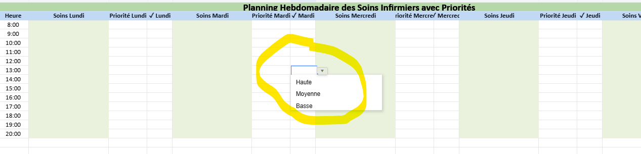 Un fichier de planning hebdomadaire des soins infirmiers, bien conçu, doit proposer :