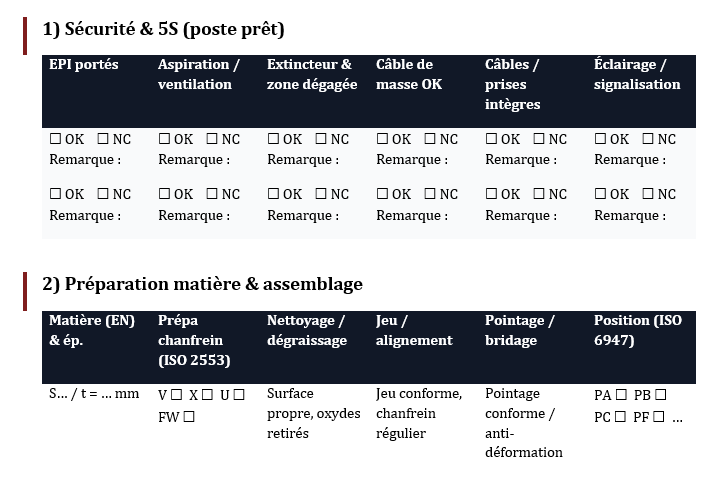 Checklist — Poste Soudage (MAG/MIG/TIG/SMAW)