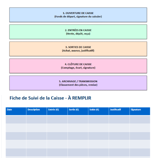 - Sécurisation des fonds : Les fonds doivent être protégés contre les risques de vol ou de perte, en les déposant dans un coffre-fort ou en les transférant à la banque.