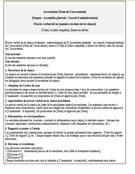 Vous disposez ainsi à la fois d’un outil de rédaction et d’un support de formation pour les responsables qui écriront les prochains procès-verbaux au sein de l’association.