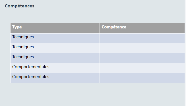 - Comportementales (rigueur, communication…)
