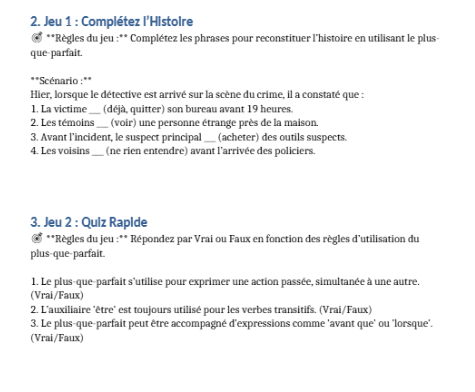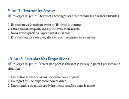 Apprendre le plus-que-parfait peut sembler complexe, mais grâce à une approche ludique et interactive, vous pouvez en maîtriser les subtilités tout en vous amusant. Ce document vous propose une série de jeux gamifiés pour intégrer les règles et les usages du plus-que-parfait dans des contextes variés, de manière progressive et créative.