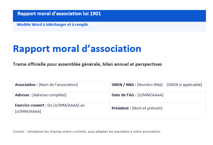 Rapport moral d’association à télécharger et à remplir (modèle Word + exemple complet)
