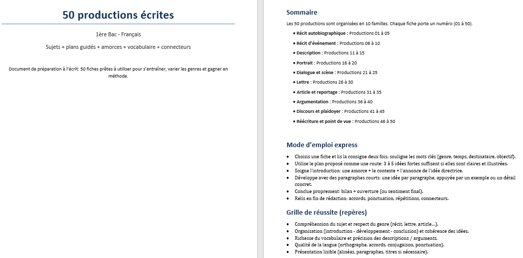 50 productions écrites en 1ère Bac :...
