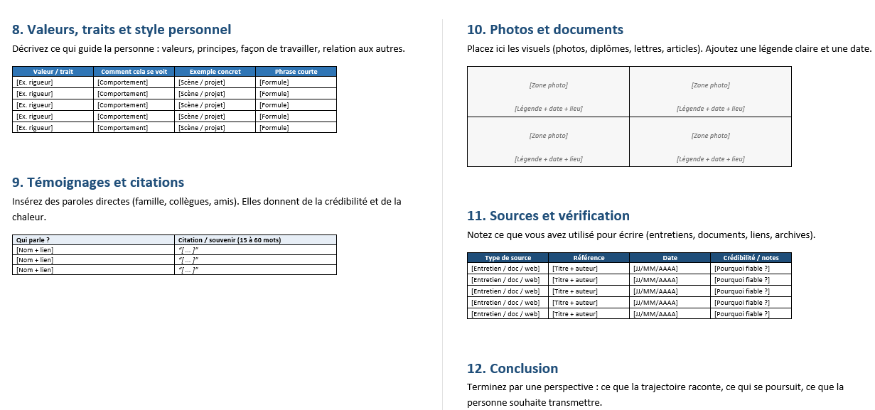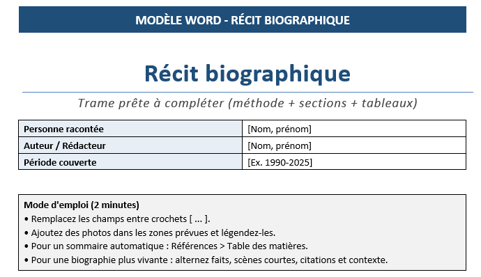 13) Comment utiliser un modèle Word de récit biographique