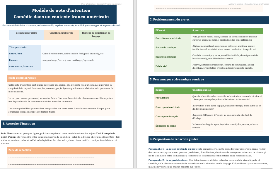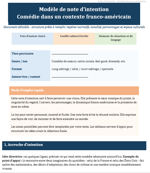 Télécharger un exemple Word d’une note d’intention de comédie dans un contexte franco-américain ⬇️