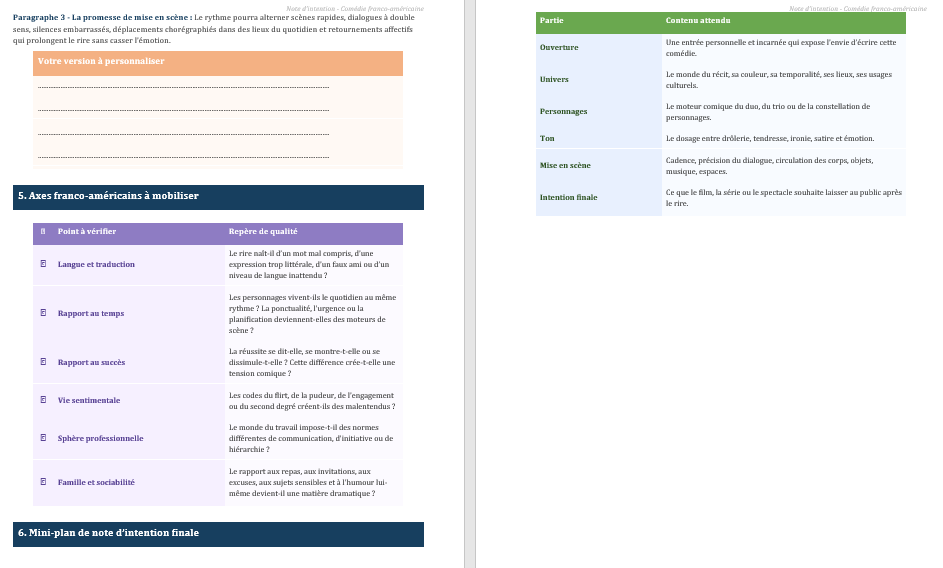 Pour produire un texte convaincant sur la note d’intention de comédie dans un contexte franco-américain, une structure claire reste utile. On peut suivre un mouvement en cinq temps :