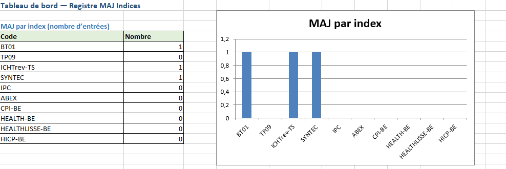 - Enregistrer chaque publication dans Registre_MAJ (un enregistrement = un mois d’un indice).