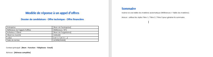 Quel modèle Word utiliser pour une réponse à un appel d’offre