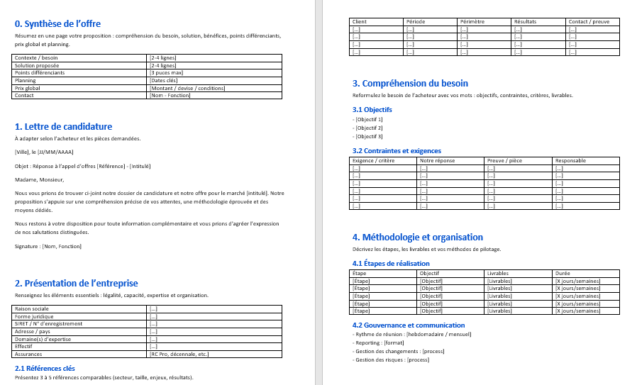 Réponse aux appels d’offres — Guide opérationnel France & Canada + modèles Word