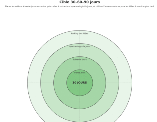• À rédiger (min.) : tableau “Reco | Impact | Effort | Priorité | Pilote | Échéance”.
