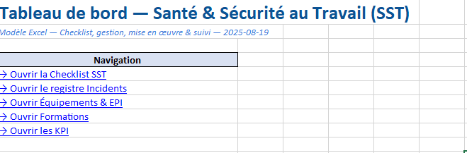 Santé & Sécurité au Travail (SST) — Modèle Excel de mise en œuvre avec checklist, gestion et suivi