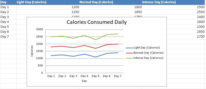 - Utiliser des baromètres ou des graphiques : Les outils comme Excel peuvent automatiser le suivi des calories et vous aider à visualiser votre apport calorique sous forme de graphiques. Vous pouvez ainsi suivre l’évolution quotidienne ou hebdomadaire.