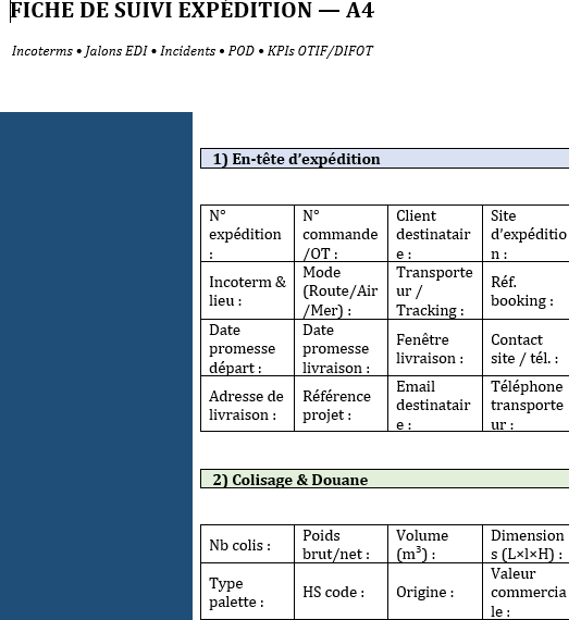 SUIVI EXPÉDITION — FICHE UTILE (4 modèles opérationnels Excel et Word + check-list)