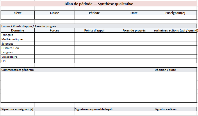 Une bonne page vaut mieux qu’un grand classeur, si elle conduit à un acte mesuré à date fixe. Le suivi individuel, pris ainsi, cesse d’être une obligation administrative : il devient le métronome modeste d’un progrès que l’élève, les familles et l’équipe savent reconnaître sans long discours.